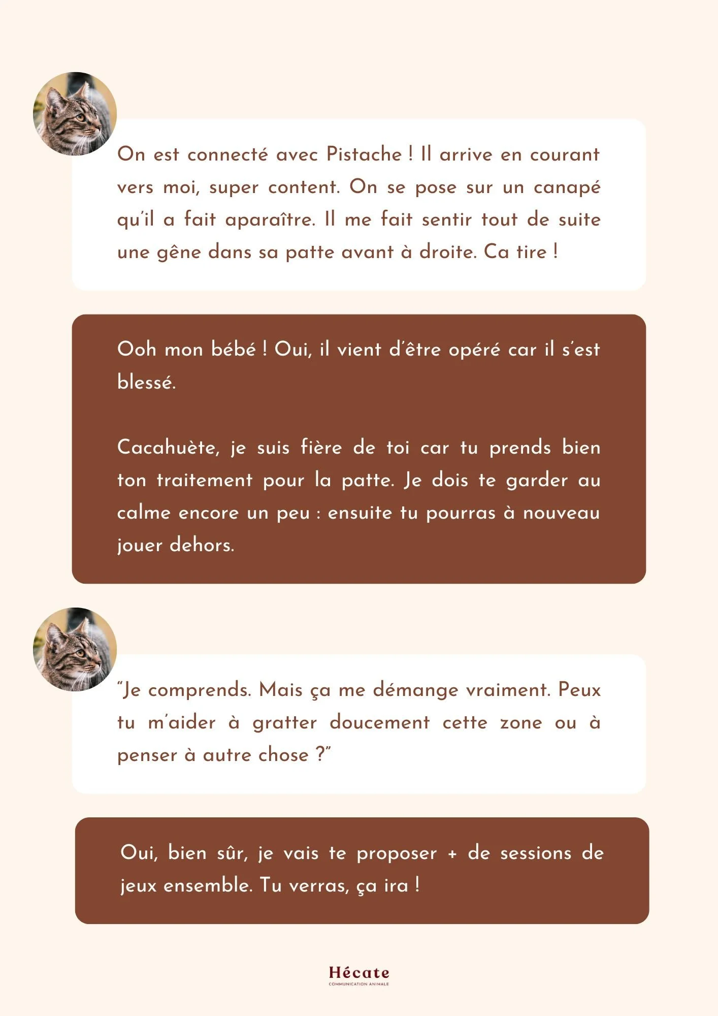 Ecoute profonde de votre animal : il partage librement ce qui est important pour lui. Aucune pression, aucune attente. Vous recevez ensuite un compte rendu détaillé (PDF ou audio, au choix).