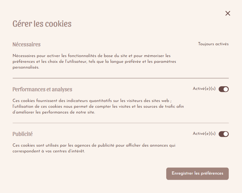 Le cas échéant, des "cookies" émanant de l'éditeur du site et/ou des sociétés tiers pourront être déposés sur le terminal, avec accord. Dans ce cas, lors de la première navigation sur ce site, une bannière explicative sur l'utilisation des "cookies" apparaîtra. Le consentement donné sera valable pour une période de treize mois. Le Client / Utilisateur a la possibilité de désactiver les "cookies" à tout moment grâce à la barre “Cookies” en bas de l’écran.